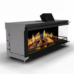 Ein Kamineinsatz für individuelle Kamin- und Wohnmöbelgestaltung und extra breitem Flammeneffekt. Aus dem Zusammenspiel von Wasser- und Lichttechnik entsteht ein sehr realistisches 3D-Bild,